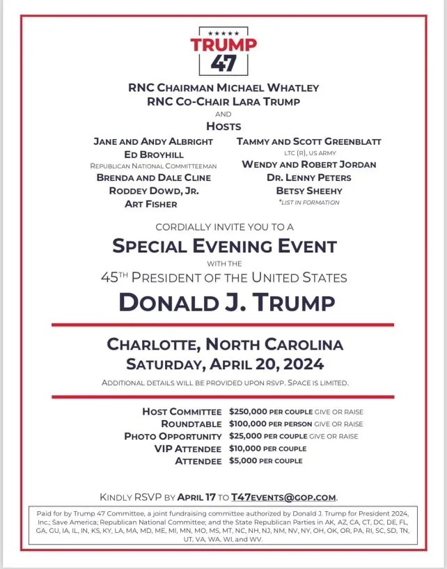 Andy Albright, the CEO of National Agents Alliance (NAA), is co-hosting a fundraiser for Trump where attendees will spend anywhere between $5,000 and $250,000 per couple. Albright co-founded the NAA in 2002 and was appointed as CEO in 2006, according to the organization’s website. The group, which is currently headquartered near downtown Burlington, NC, has been accused of being an MLM.