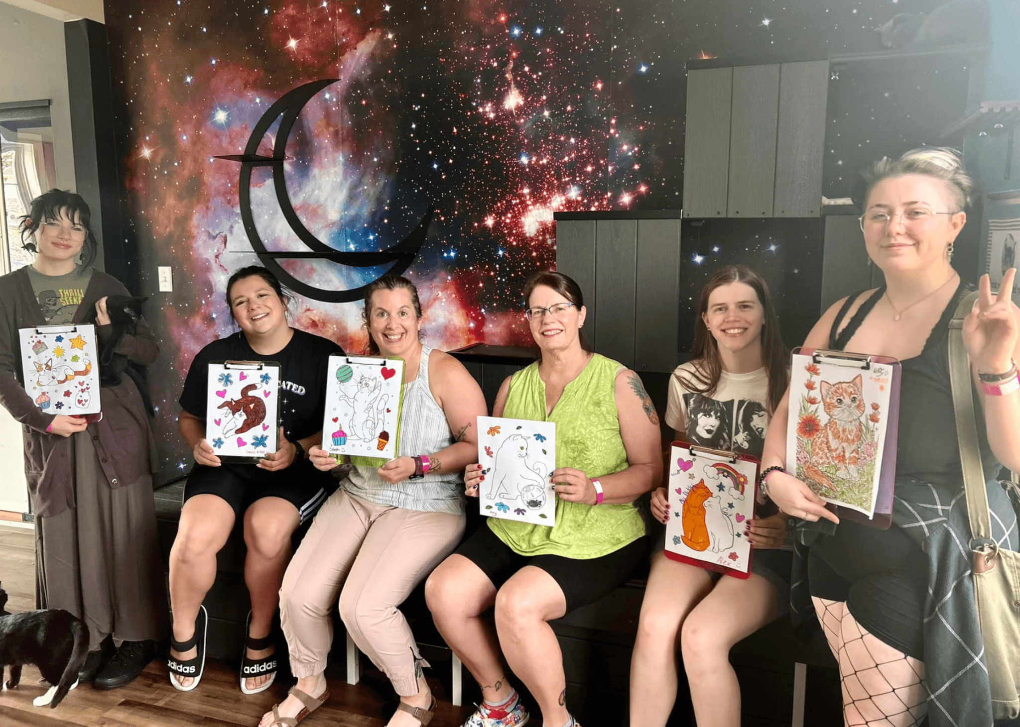 “It has just been an outpouring of support,” says Soboleski of their first few months being open. “Local artists want to put their stuff in the shop and other organizations are asking how to open their own cat cafe.”