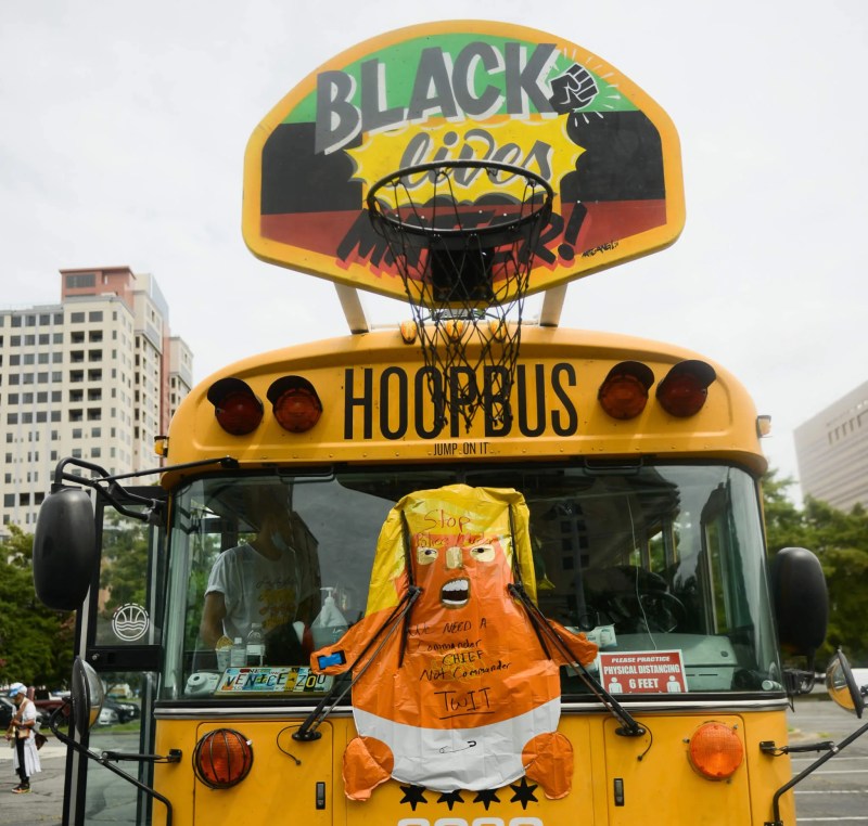 The traveling bus was created by two basketball players who said they want to “dunk on racism.”