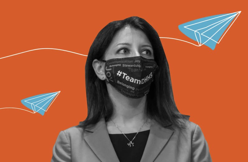 NC DHHS Secretary Mandy Cohen in an October 2020 briefing with Gov. Roy Cooper. (Image via NC DPS/Treatment by Rebecca Russ)