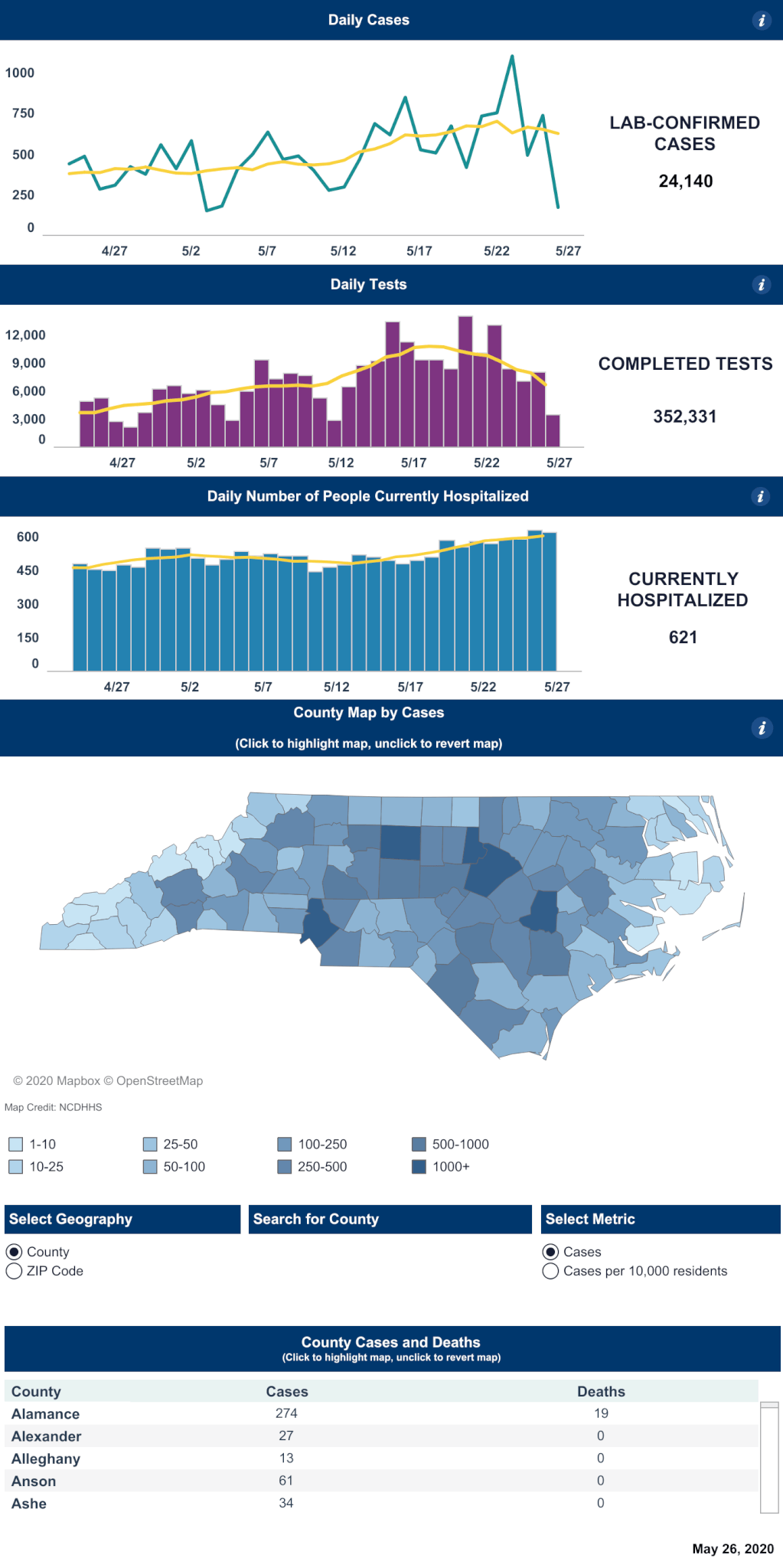 North Carolina has fared better than some states that saw early spring spikes of the novel coronavirus, although new cases have been trending upward in recent weeks as testing expanded. Indeed, the state saw its highest one-day total for new cases Saturday, with 1,107 new lab-confirmed cases.