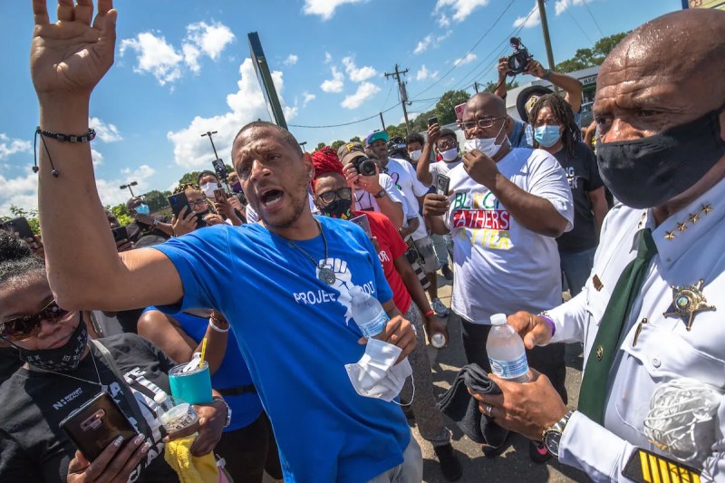 Approaching the stopping point at Catherine Simmons, West Charlotte activist Gemini LaDaire exhorted the crowd to get their family members and friends involved. “I need my strong Black men to get up, stand up and show out. We have to get shoulder to shoulder and heel to heel to protect our community,” LaDaire said.