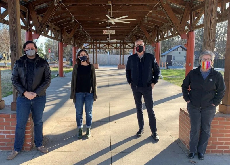 LGBTQ leaders in Orange County are leading the push for local nondiscrimination ordinances now that HB2 is dead and gone. From L to R, Hillsborough Commissioner Matt Hughes, Chapel Hill Council Member Karen Stegman, Carrboro Council Member Damon Seils, and Carrboro Mayor Lydia Lavelle.