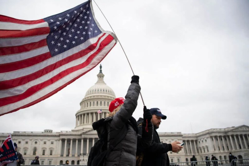 A demonstrator holds an American flag during a Trump rally along the East Front of the Capitol in Washington on Tuesday, Jan. 5, 2021. (Photo by Caroline Brehman/CQ-Roll Call, Inc via Getty Images)