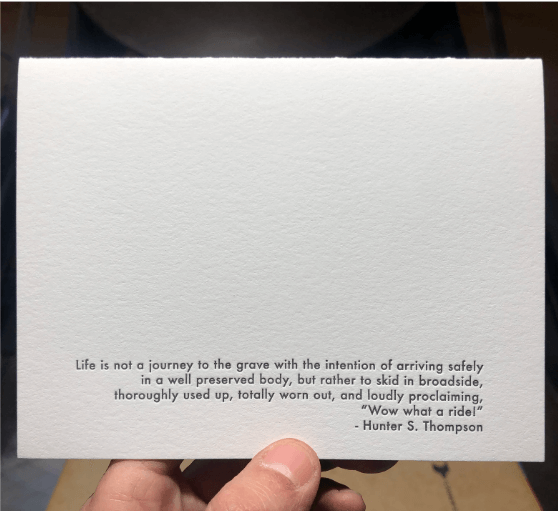 Start with an excellent card, like this one featuring a Hunter S. Thompson quote. Then tuck one of these highly desired gifts inside: