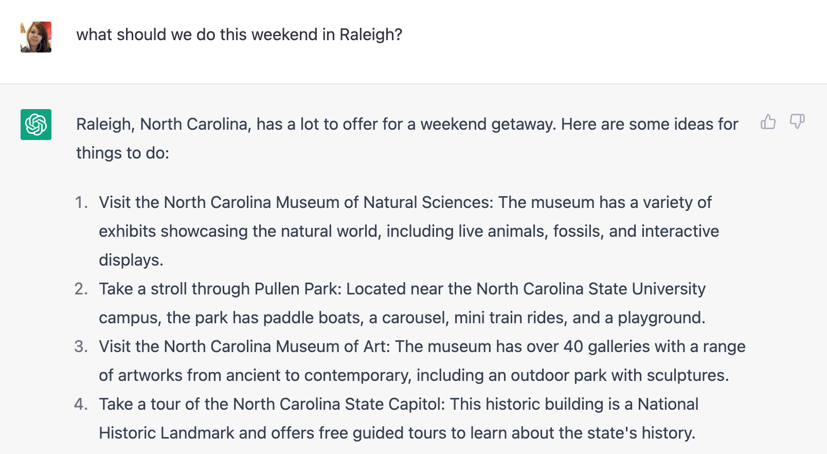 Then I wanted to see how ChatGPT would respond if I got a little more specific.